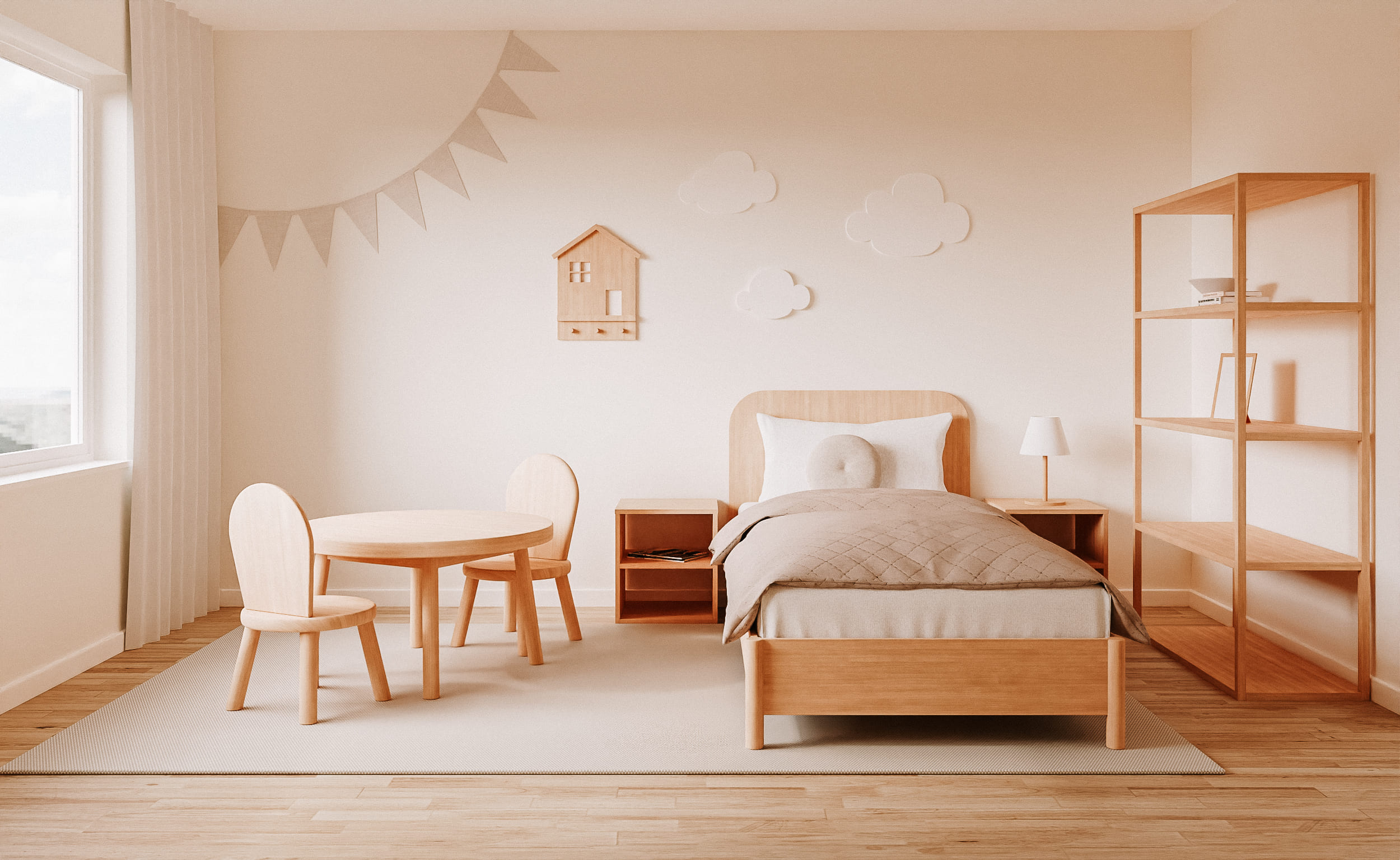 children’s furniture, décor, or lifestyle products in a serene and realistic environment.
